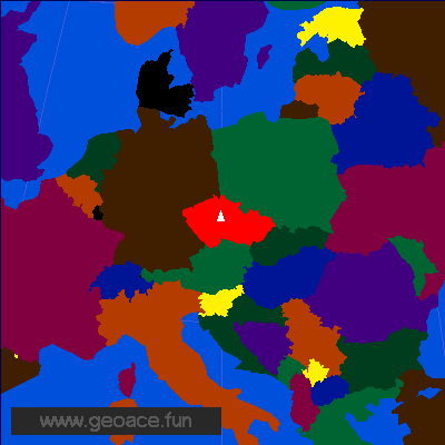 Can you name the red country with the white triangular mark?